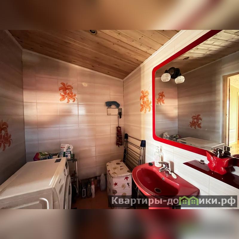 Жилой дом построен из сэндвич-панелей, фундамент - плита, стены отделаны ролл-хаусом, крыша из металлочерепицы. Стеклопакеты в доме из натурального дерева со встроенными между рамами жалюзи. Дом отваливается электрическими радиаторами, а также на первом этаже тёплый водяной пол.