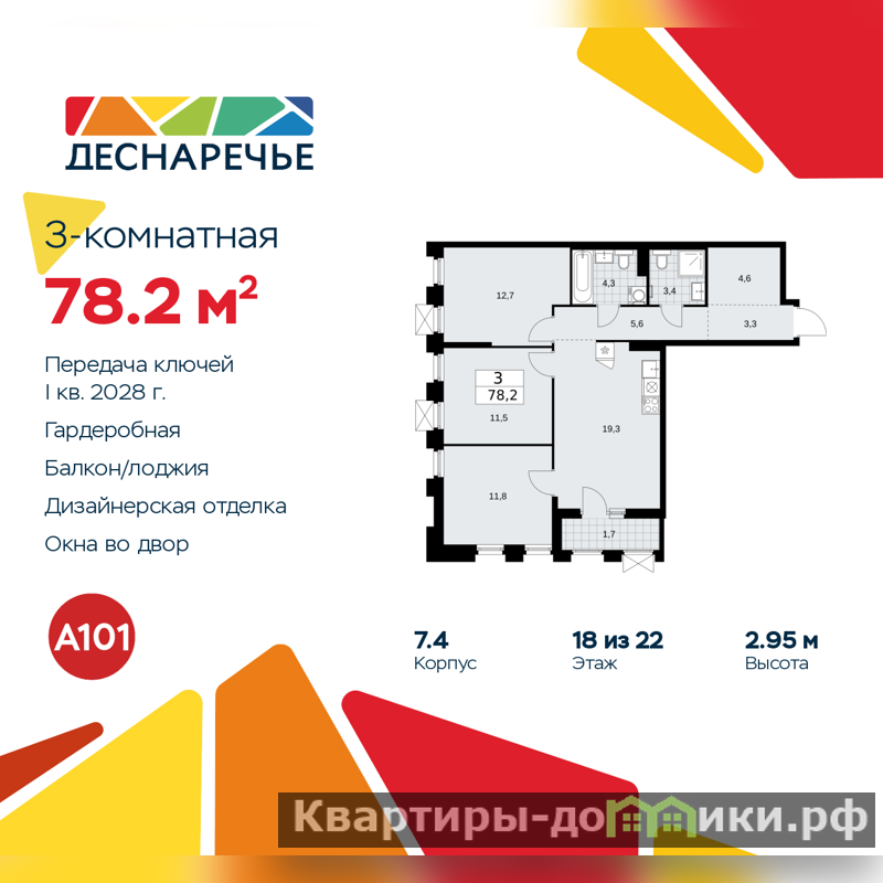 Квартира находится в корпусе 7.4. Дом монолитный, одноподъездный, высотой 22 этажа. На этаже 9 квартир. В подъезде 1 пассажирский и 2 грузовых лифта. Начало строительства - 2 квартал 2025 года. Окончание строительства - 1 квартал 2028 года. Оформление сделки по договору долевого участия.
