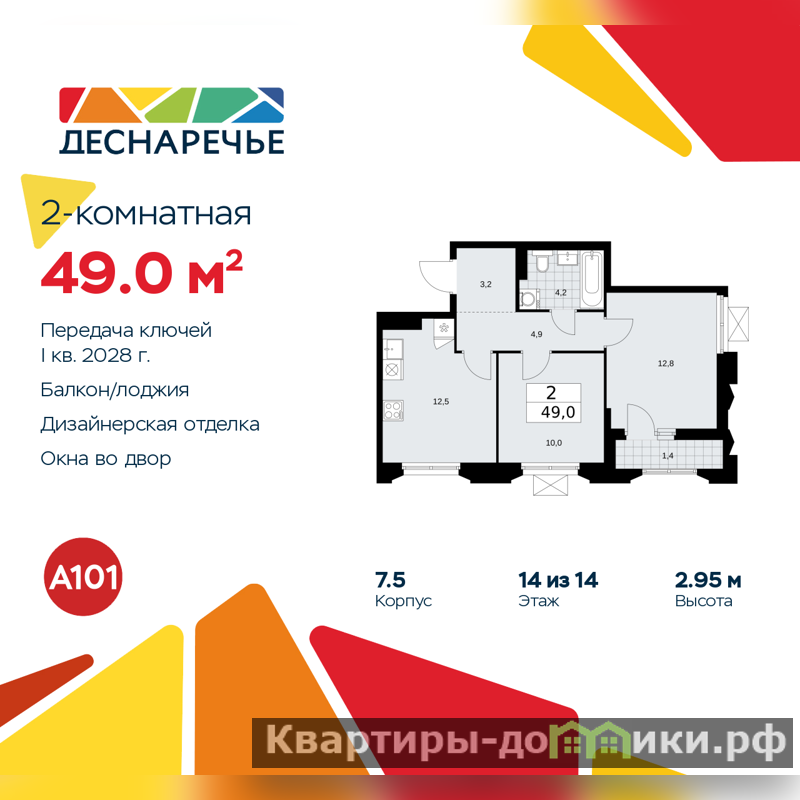 Продается двухкомнатная квартира от застройщика с отделкой в ЖК "Деснаречье" на 14 этаже. Общая площадь: 49 кв.м., жилая: 22.8 кв.м., площадь просторной кухни-столовой: 12.5 кв.м. Угловая квартира, идеально подойдет любителям тишины и панорамных видов. В квартире одна лоджия, один совмещенный санузел. Высота потолков 2.95 м.