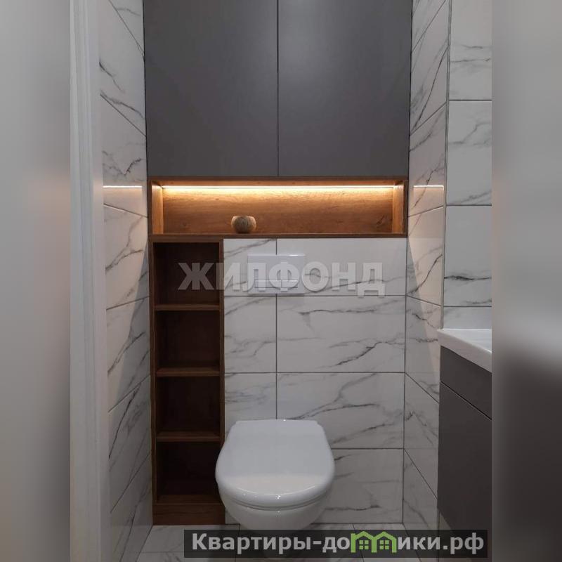 - Туалет 3 кв. м - пол, стены - плитка, подвесной унитаз, подвесная тумбочка с умывальником 40см, предусмотрено место для стиральной и сушильной (рядом) машин, встроенный шкаф.