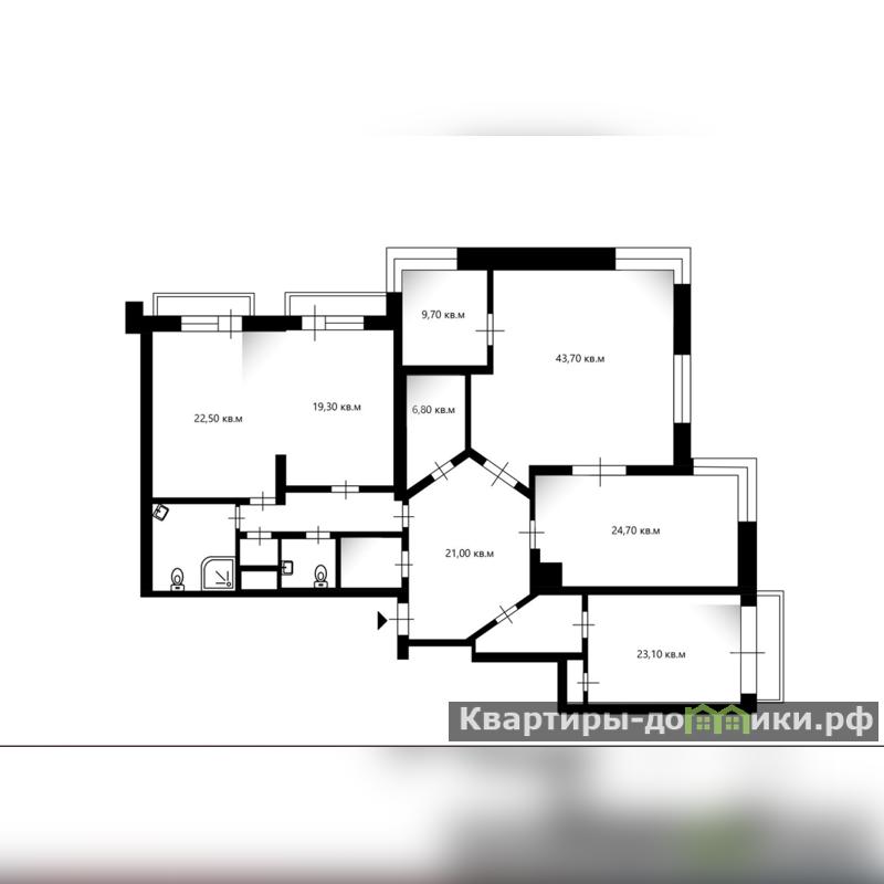 Планировочное решение: кухня-гостиная, три изолированные спальни, кабинет, три с/у, постирочная, гардеробная, кладовая.