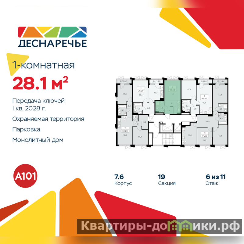 Дом монолитный, двухподъездный, высотой 11 этажей. Квартира находится в 1-й секции в корпусе 7.6. На этаже 5 квартир. В подъезде 1 пассажирский и 1 грузовой лифт. Начало строительства - 2 квартал 2025 года. Окончание строительства - 1 квартал 2028 года. Оформление сделки по договору долевого участия.