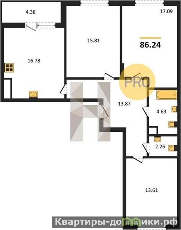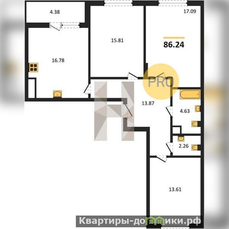 Квартира: 3 к 86,24 кв.м., 3 этаж в комплексе Лесная сказка, 2 очередь, корп.1/1, сдача: 1кв. , этажей: 5, адрес Светлогорск г., Новая ул., , Застройщик: ГК Балтия-Инвестстрой.