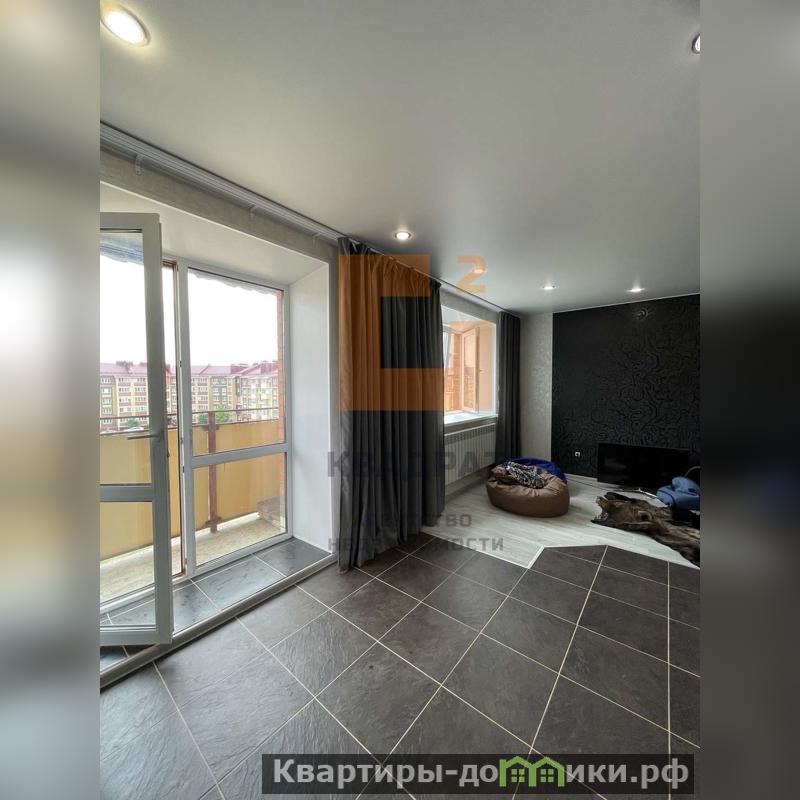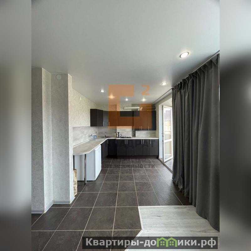 Большая, объединённая с комнатой, кухня, имеет выход на балкон, откуда открывается прекрасный панорамный вид, кухонный гарнитур остаётся новому собственнику!