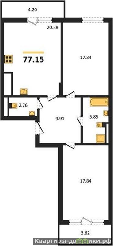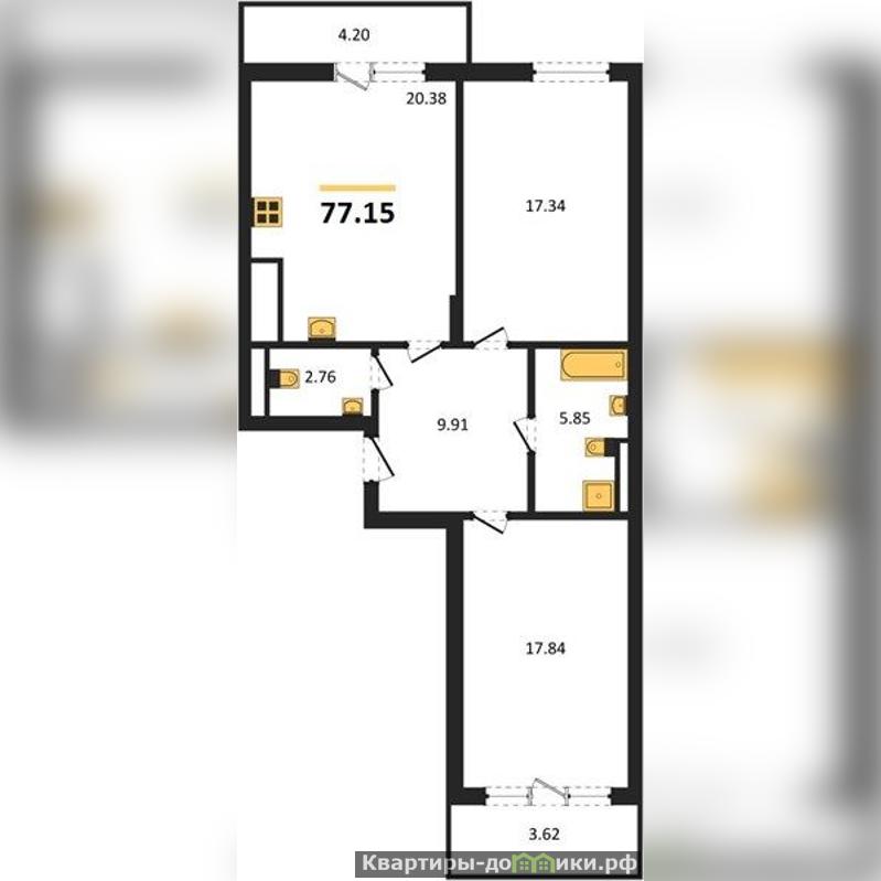Квартира: 2 к 77,74 кв.м., 4 этаж в комплексе Аэро, 1 очередь, корп.C, сдача: 2кв. , этажей: 7, адрес Малое Исаково п., Портовый 2-й пер., д. 12, Застройщик: ГК Расцвет.