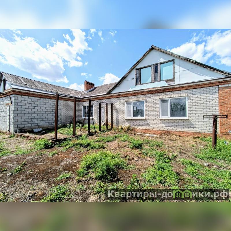 Кирпичное домовладение, кровля - шифер, о.п. 114,4 кв.м., расположенное в ст. Новомалороссийская по ул. Победы. Имеет три входа/выхода. Состоит из четырех жилых комнат раздельного расположения, большой гостиной, кухни, с/у и коридора. Стены оштукатурены, потолки побелены, полы застелены листами ДВП. В гостиной стены оклеены обоями, потолочная плитка, пол застелен линолеумом. Построен кирпичный камин. Деревянная лестница ведет на мансардный этаж. В кузне стены и потолок оштукатурены, рабочая зона облицована кафелем. С/у раздельный. Установлены металлопластиковые окна. Счетчики на все коммуникации. Автоматический газовый водонагреватель. Отопление - напольный газовый котел. Входные двери - железные. Из хоз.построек: кирпичный гараж со смотровой ямой + помещение свободного функционала. Канализация - септик. Ухоженный земельный участок о.п. 12 соток,есть межевание. Железный забор, ширина фасада 30,1 м.. Перед двором есть место для стоянки автомобиля.