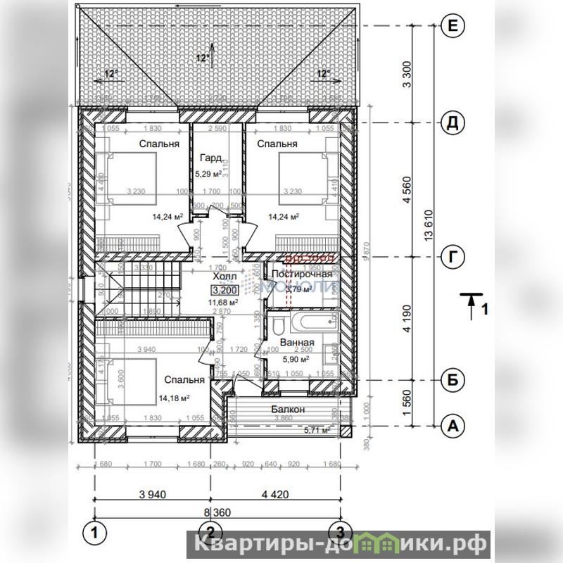 Высота помещений мансардного этажа – от 2,00 м до 2,70 м.
