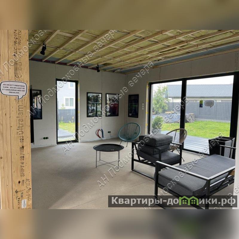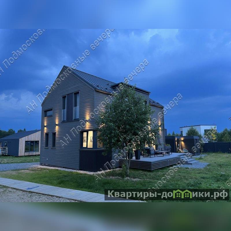 Дом 175 кв. м, 2 этажа / 2 уровня, каркасный, Дом выполнен из домокомплекта, произведенного на норвежском заводе из иностранных материалов, срок службы дома не менее 100 лет. Толщина утепления кровли и нулевого перекрытия 300 мм, стены 250 мм каменной ваыт. На заводе также окрашен и смонтированы фасад из скандинавской доски с поднятым ворсом (для длительного срока окраса), смонтированы окна и отливы, что исключает вероятность нарушения технологии монтажа и герметизации теплого контура на стройплощадке. Все материалы использованы максимального качества. Окна выполнены из профиля Veka Softline с немецкой противовзломной фурнитурой с усиленными скрытыми петлями в комплектации Премиум, стеклопакеты мультифункциональные. В гостиной использовано панорамное остекление с подогревом. Для силового каркаса применяется высокотехнологичный материал LVL-брус, по многим параметрам превосходящий привычные бетонные перекрытия. Фундамент из забивных железобетонных свай длиной 4 м, перекрытие выполнено на заводе из LVL-бруса толщ. 300 мм с защитой от грызунов, со стяжкой на 1 и на 2 этажах. Входная дверь финская энергоэф. с терморазрывом. Ограждение французских балконов из стекла. По всем перекрытиям (1 и 2 эт) выполнена полусухая стяжка с водяным теплым полом. Терраса и крыльцо выполнены из импрегнированной древесины на свайном фунд., перекрытия балки, окна пвх, кровля кликфальц; внутри под отделку; отопление - система "тёплый пол". Планировка: 1-й этаж - прихожая, гостинная с обеденной и кухонной зоной, спальня (кабинет), санузел, котельная, гардеробная, терраса; 2-й этаж - холл, две спальни и одна мастер-спальня с санузлом, санузел, гардеробная. Другие строения: гостевой дом 30 кв. м, 2 этажа (модульный, в стоимость не входит. Может быть демонтирован). Коммуникации - электричество 10 кВт, три фазы; газ по границе участка; центральный водопровод по границе участка; центральная канализация по границе участка. Подъездная дорога: плиты. Безопасность - охраняемый коттеджный поселок. Участок 10 соток / дачное строительство / коттеджный поселок. На участке газон. Рядом инфраструктура: супермаркеты, магазины. В 5 километрах обустроенный пляж Истринского водохранилища, Конный клуб. Соседи построились. Общественный транспорт - автобус. Административная принадлежность: Московская область, городской округ Солнечногорск (Солнечногорский район). Возможна льготная и IT- ипотека. Этот коттедж можно купить в ипотеку. Оперативный показ по предварительной договоренности. Быстрый выход на сделку. С нашей стороны — гарантия юридической чистоты объекта, прозрачности сделки, наличия всех документов. Юридическое сопровождение. Безопасность расчетов. Бесплатная консультация у менеджеров. Звоните! Документы готовы к продаже