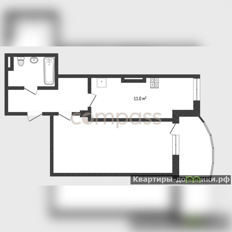 Квартира с удобной для жизни планировкой: просторная комната, полноценная кухня, большой застекленный балкон, совмещённый сан/узел.
