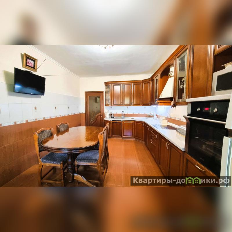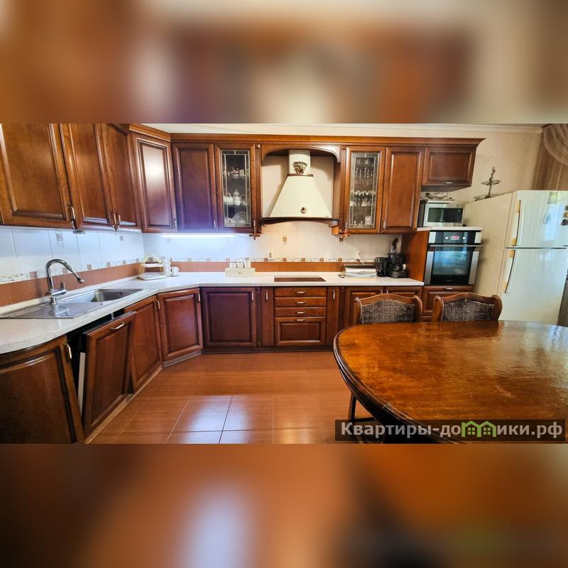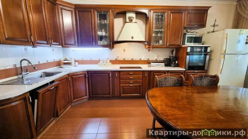 Просторная кухня выходом на балкон, которая оборудована современной техникой (варочная панель, духовка, посудомоечная машина), кухонный гарнитур выполнен из натурального дерева. Здесь вы сможете создавать кулинарные шедевры для своей семьи!