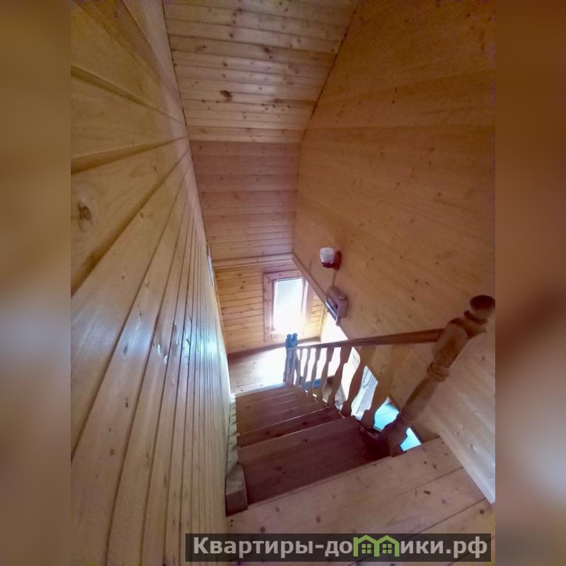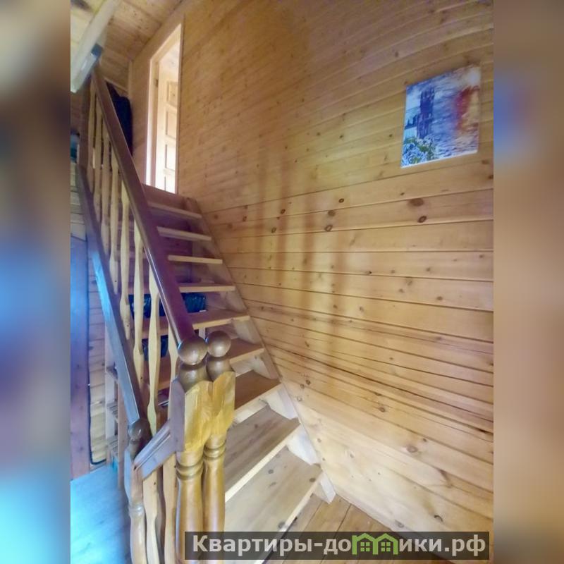 Второй этаж каркасный, отделан евровагонкой, три комнаты (15,4 + 9,4 + 8 м), пластиковые окна, удобная лестница.