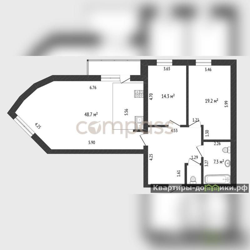 Быстрый выход на сделку. Хорошая планировка в квартире большая кухня-гостинная 48кв и две спальни 14 и 19 кв.