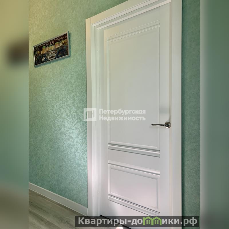 Установлена новая входная дверь Броня ЛС 21 с зеркалом, новые межкомнатные двери серия Alto эмалит белый, на стенах качественные обои Bernardo Bartalucci Carlotta.
