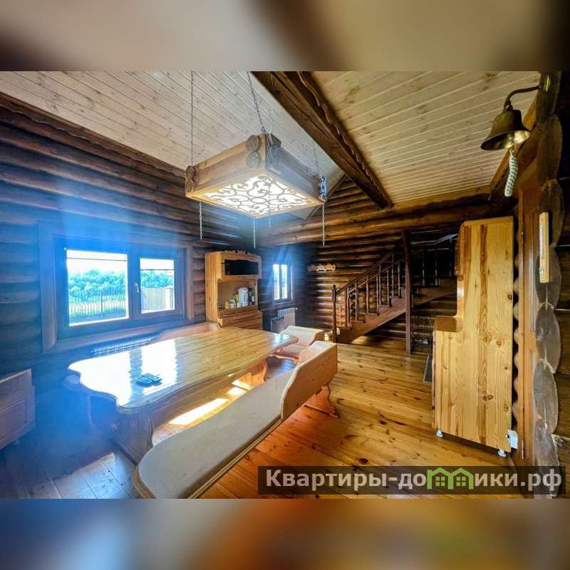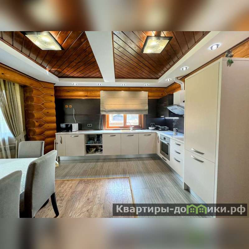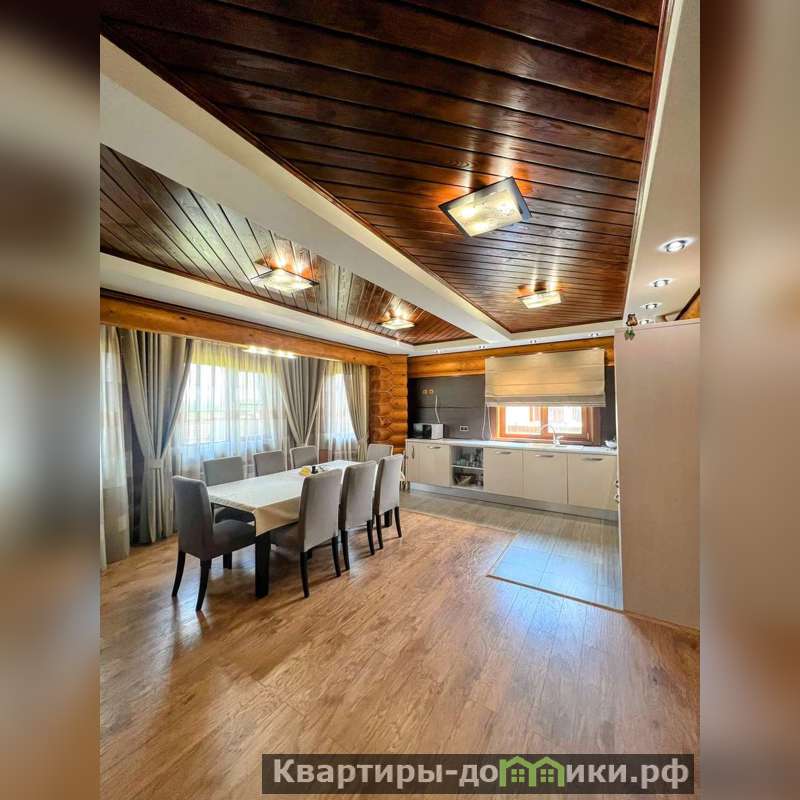 Представляем вашему вниманию уютный загородный дом площадью 261,9 кв.м, выполненный из качественного оцилиндрованного бревна , природный материал стен дарит ощущение гормонии и свежести воздуха.