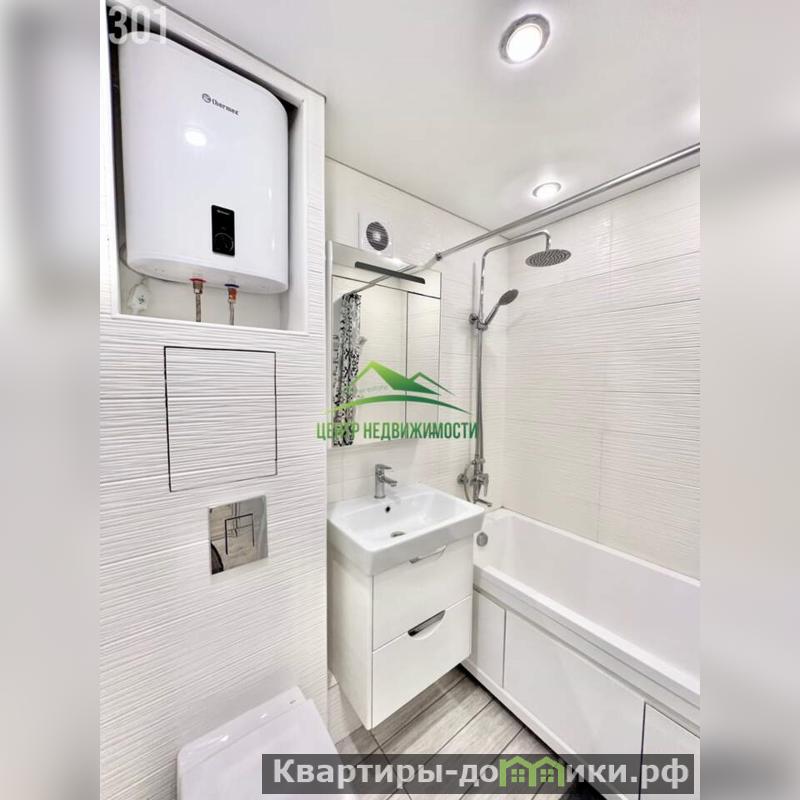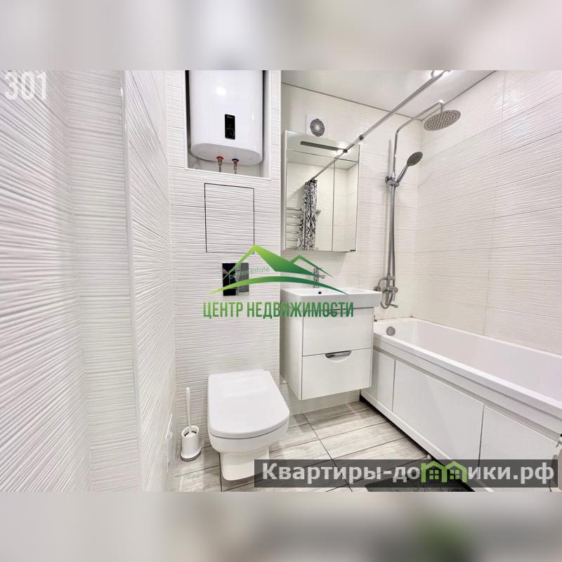 Сделан хороший ремонт с использованием качественных материалов, произведена замена сантехники, выровнены стены, натяжные потолки, новые межкомнатные двери, ламинат, установлены стеклопакеты, застекленный балкон, новые радиаторы отепления, пол с подогревом в санузле, установлен водонагреватель.
