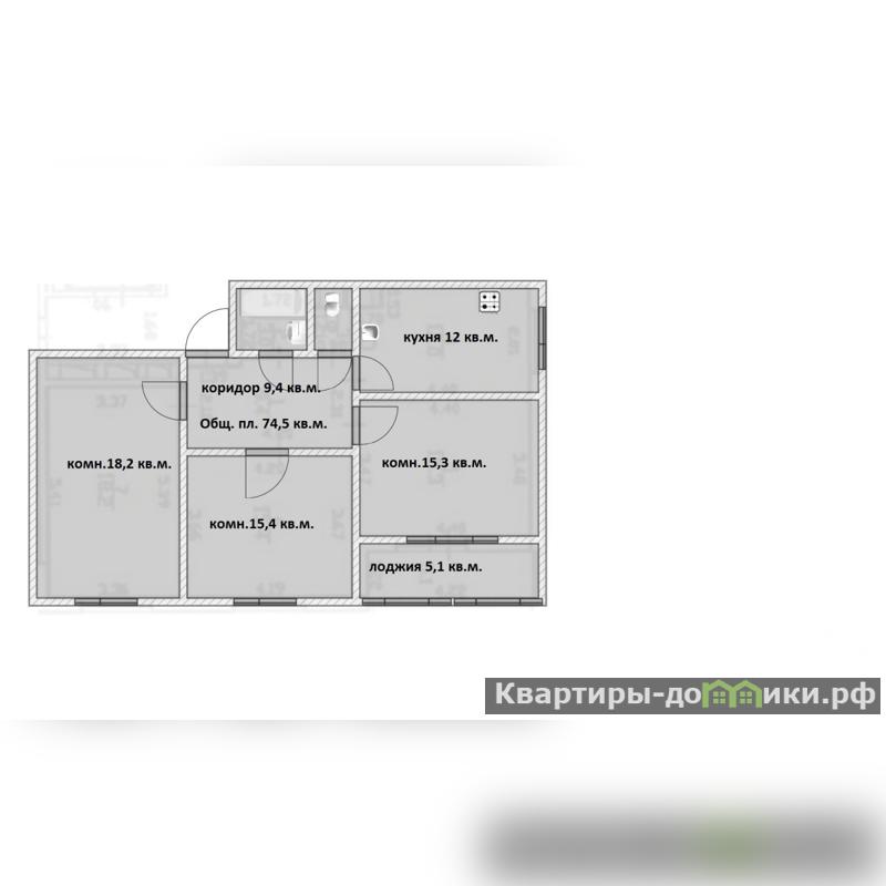 Общая площадь - 74,5 кв.м.( без лоджии).