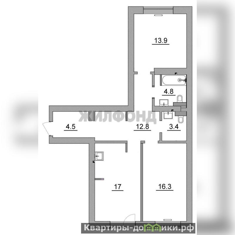 3 комн. квартира по ул. Преображенская. Общей площадью: 72.70 кв.м.