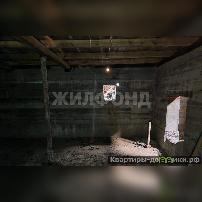 Дом имеет цокольный этаж и стоит на бетонной подушке. Цокольный этаж монолитный, высотой 2,5 метра. Сам дом сложен из бруса 150*150 мм. , имеет две комнаты, санузел и прихожую, общей площадью 8 м. *10 м. Также есть возможность обустроить мансардный этаж, площадью 3 м. *10 м. Между первым этажом и цокольным постелен черновой пол.
