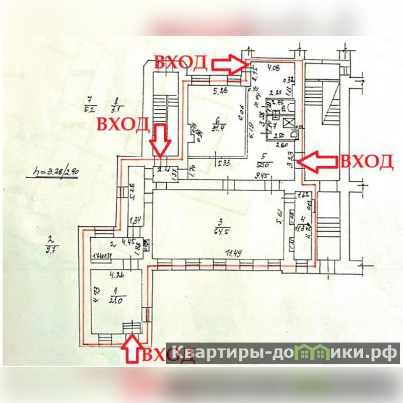 Вход: 1 отдельный с улицы, 3 со двора