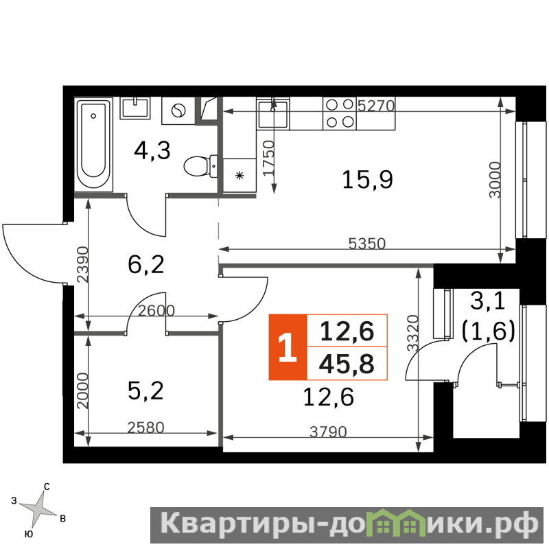 Продаётся 1-к квартира №2 общей площадью 45.8 кв.м на 2-м этаже 29 этажного дома. Без отделки.