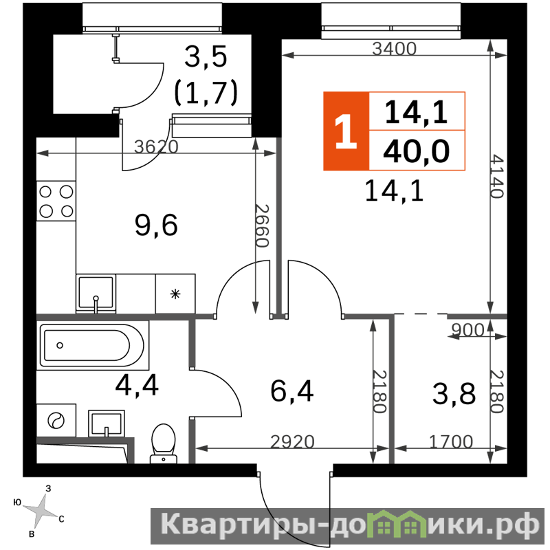 Продаётся 1-к квартира №528 общей площадью 40 кв.м на 2-м этаже 27 этажного дома. Отделка Whitebox.