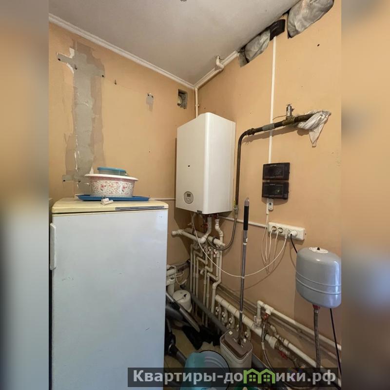 Дом размером 9 на 10 метров, блочный, облицован кирпичом. Фундамент ленточный, все коммуникации подведены: есть центральный газ, вода из колодца (10 колец), электричество и канализация.