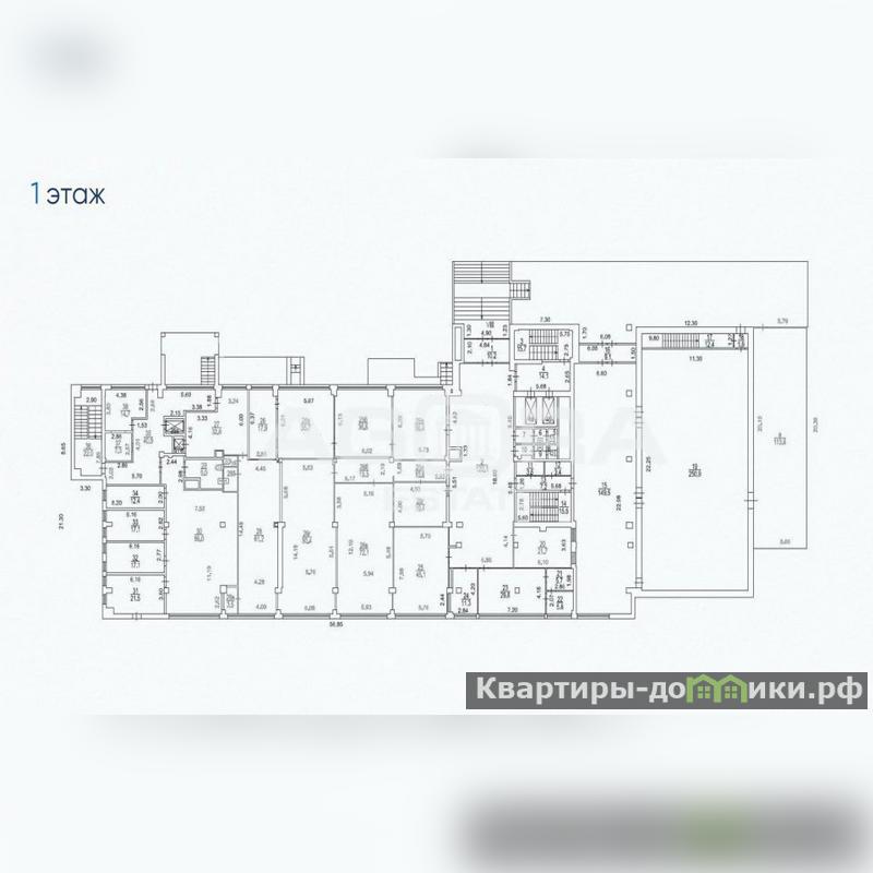 Площадь 1-го этажа 1486,1 м2 (антресоль 63,8 м2), технический этаж 399,1 м2, технический этаж 1 – 120,3 м2. Площадь 2-го этажа 368,9 м2, 3-го этажа 358,8 м2, 4-го этажа 369,3 м2, 5-го этажа 365,3 м2, 6-го этажа 364,8 м2, 7-го этажа 360,6 м2, 8-го этажа 371,9 м2, 9-го этажа 369 м2. Подвал 259,6 м2, цоколь 903,2 м2, технический подвал 281,4 м2.