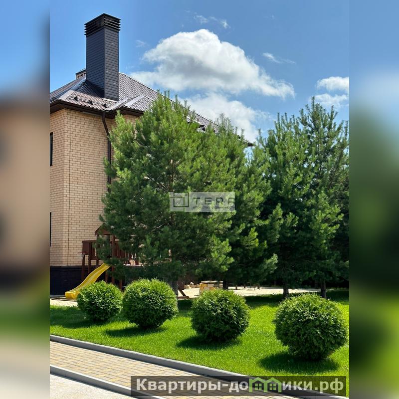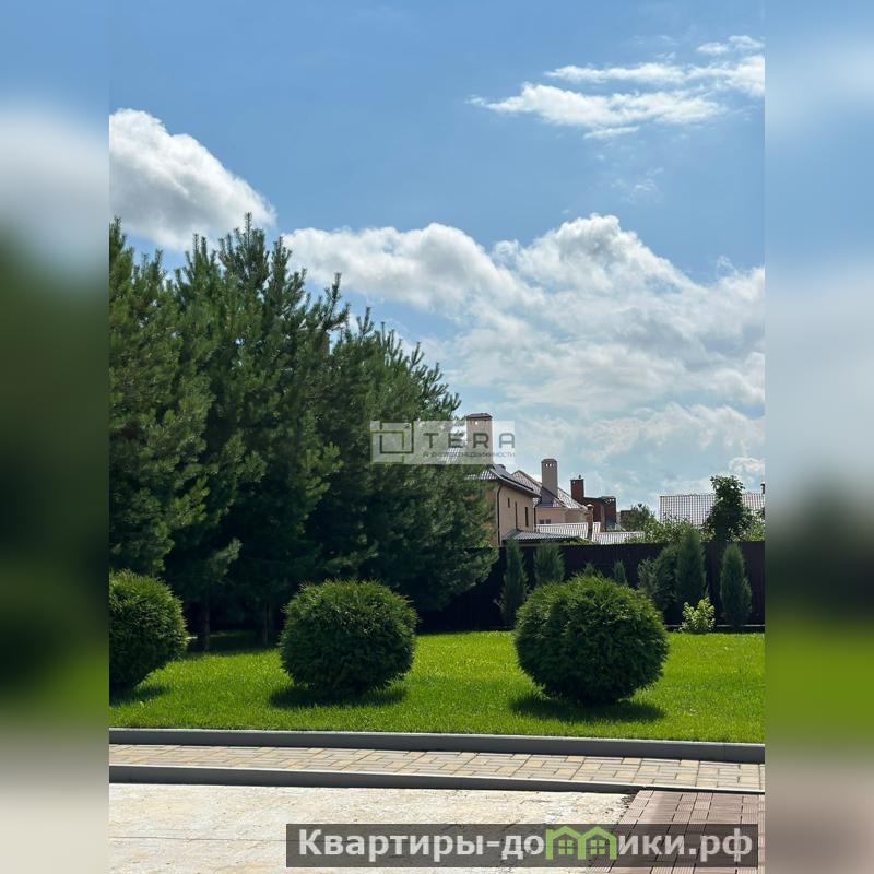 Дом стоит в окружении высоких сосен и елей. Кроме того, на участке разнообразие насаждений: можжевельник, туя, сирень, гортензия и т.д. Газон на всем протяжении участка уложен рулонный с автополивом. Также присутствует плодоносящий сад с деревьями и кустарником.