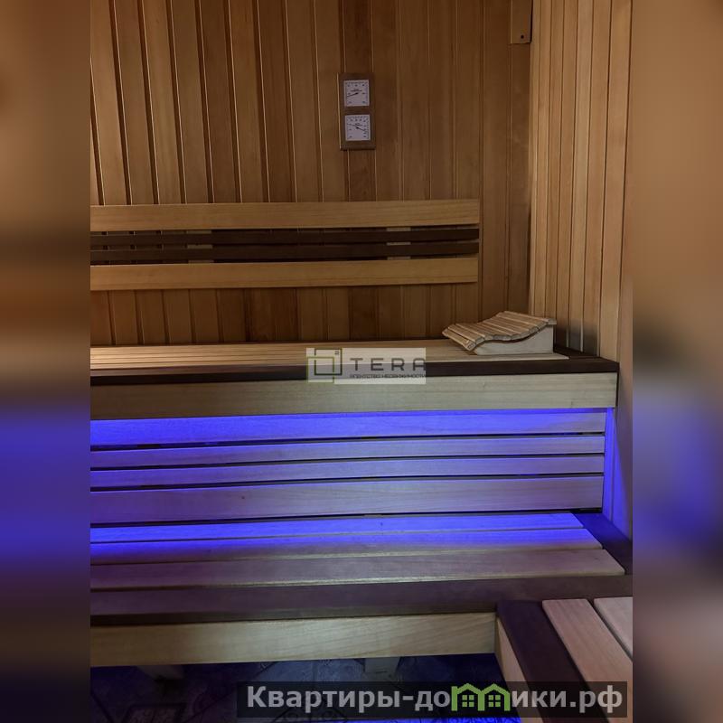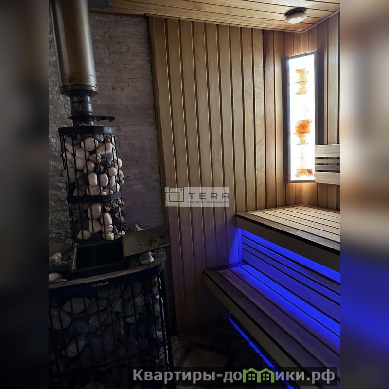 Банный комплекс с террасой для отдыха полностью обставлен мебелью, оснащен своим котлом и камином, кухней.