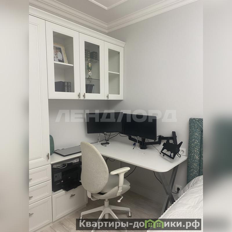 Имеется отдельная гардеробная с эффективной системой хранения вещей, 2 сан. узла, стиральная машина, бойлер на 100 литров, встроенная душевая кабина. Установлены три сплит системы. В детской комнате встроенная мебель для разнополых детей.