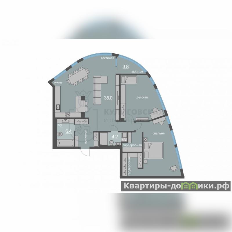 Идеальная планировка: просторная кухня-гостиная, мастер-спальня с гардеробной, ещё две большие комнаты, кабинет, продуманные зоны хранения.