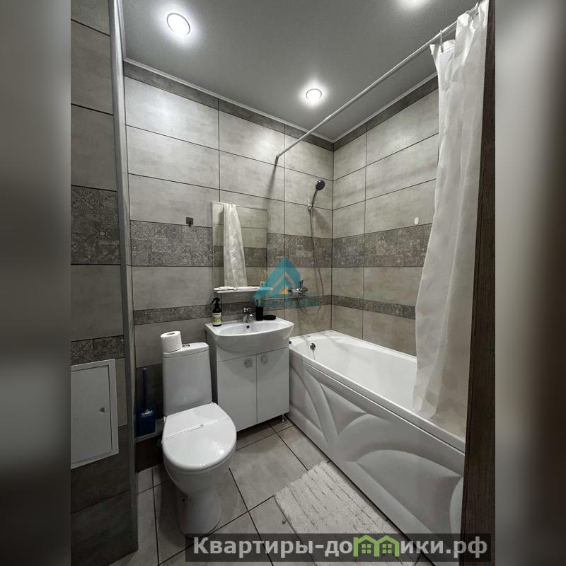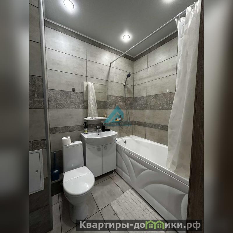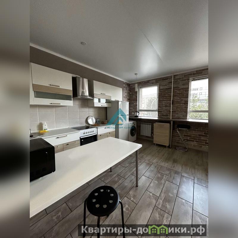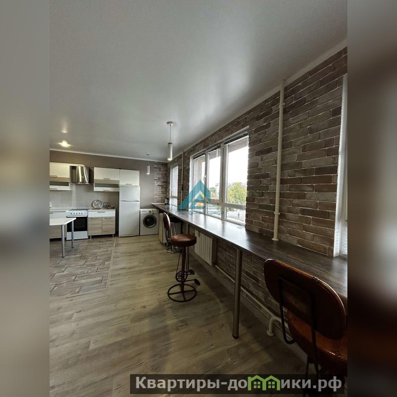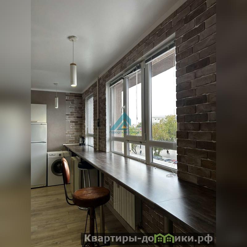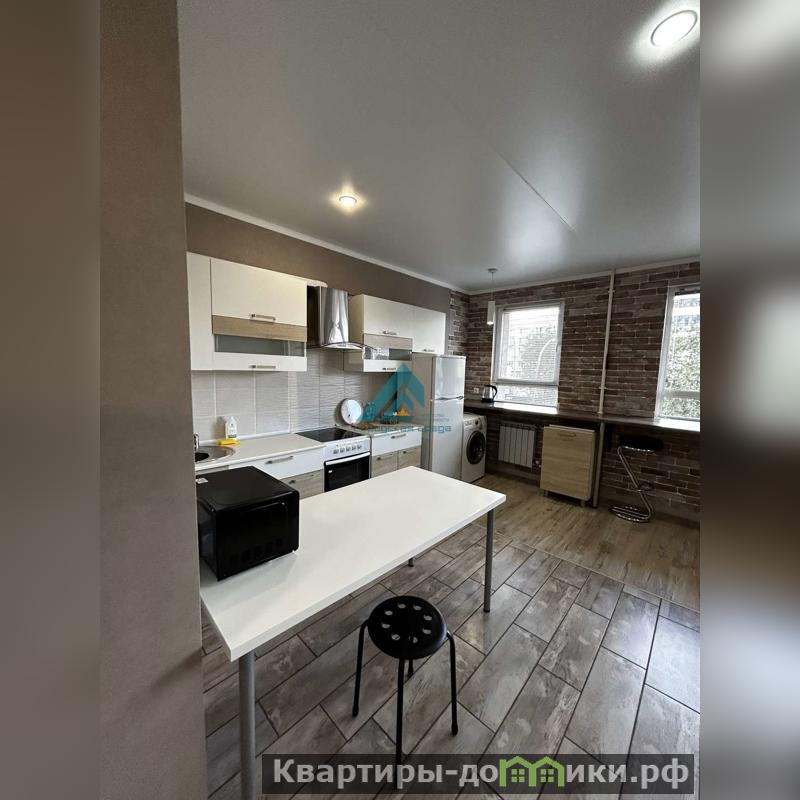 Просторная комната совмещена с кухней, что создает ощущение единого открытого пространства. Кухня оборудована всей необходимой техникой, включая холодильник и стиральную машину. В санузле установлена современная сантехника и качественная плитка.