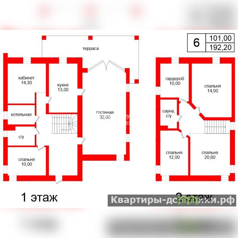 - На втором этаже: 3 спальни, гардеробная, санузел, помещение для бани, сауны или хамам.