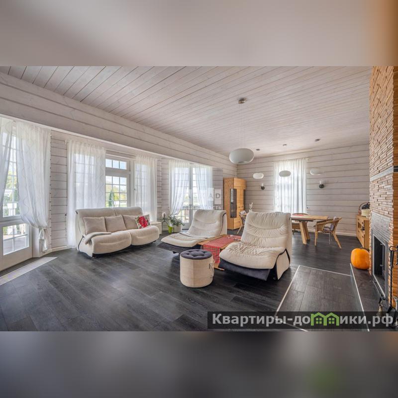 Этот стильный и современный дом площадью 400 м построен из клееного бруса, что обеспечивает экологичность и комфортный микроклимат. Светлая цветовая гамма интерьера создает ощущение простора и легкости.