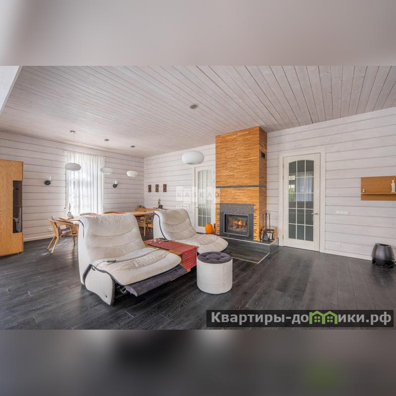 Просторная гостиная с камином и обеденной зоной - идеальное место для семейных вечеров и приема гостей.