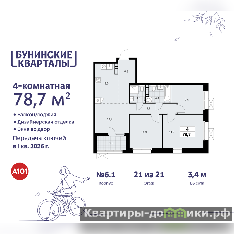 | 10.9 + 11.9 + 14.8 + 9.4 м2 | |