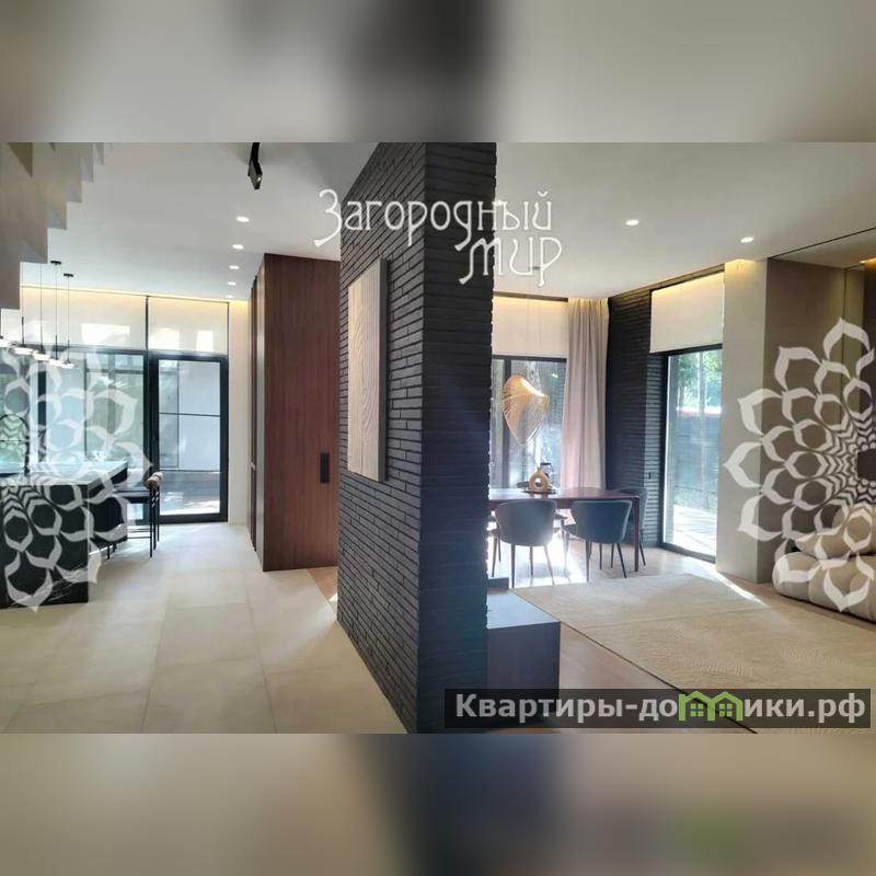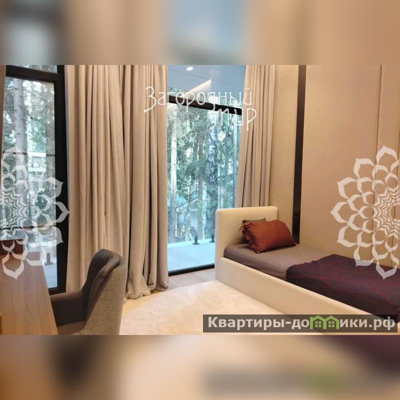 В доме 3 спальни с гардеробными и санузлами, гостиная-столовая, полностью оборудованная кухня, кабинет. Дом полностью меблирован, вся мебель сделана на заказ. Высокие потолки, панорамные окна, выход из каждой комнаты на просторные крытые террасы из натуральной лиственницы, функциональная мебель от потолка до пола, много мест для хранения. Теплые водяные полы по всему дому. Различные сценарии освещения: светильники, светодиодная лента, магнитные треки, подсветка рабочих зон, архитектурная линейная подсветка фасада и террас. Умные ролевые электрошторы и электрокарнизы.