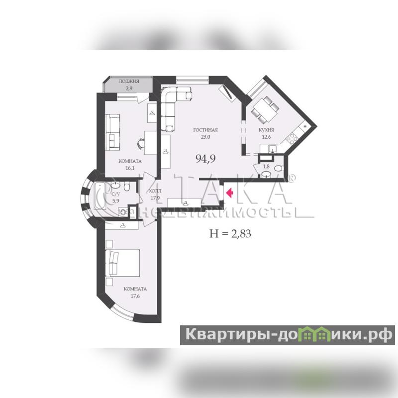 1-91978 Друзья, предлагаю Вашему вниманию СЕМЕЙНУЮ квартиру с невероятной энергетикой и завораживающим видом на Храм Анны Кашинской из окон Вашей будущей спальни.