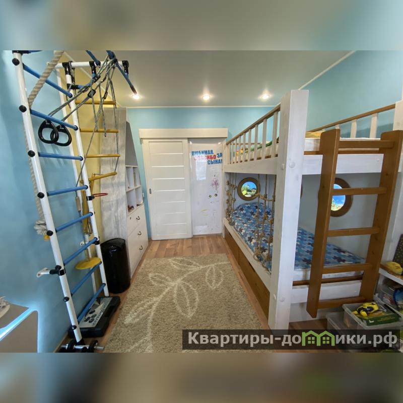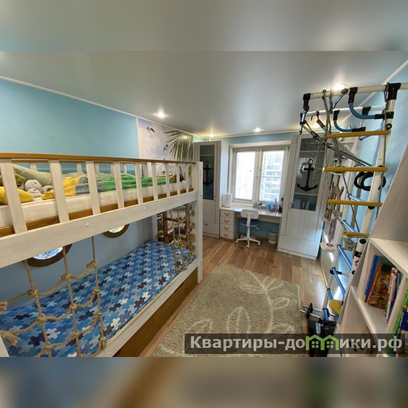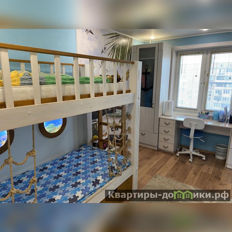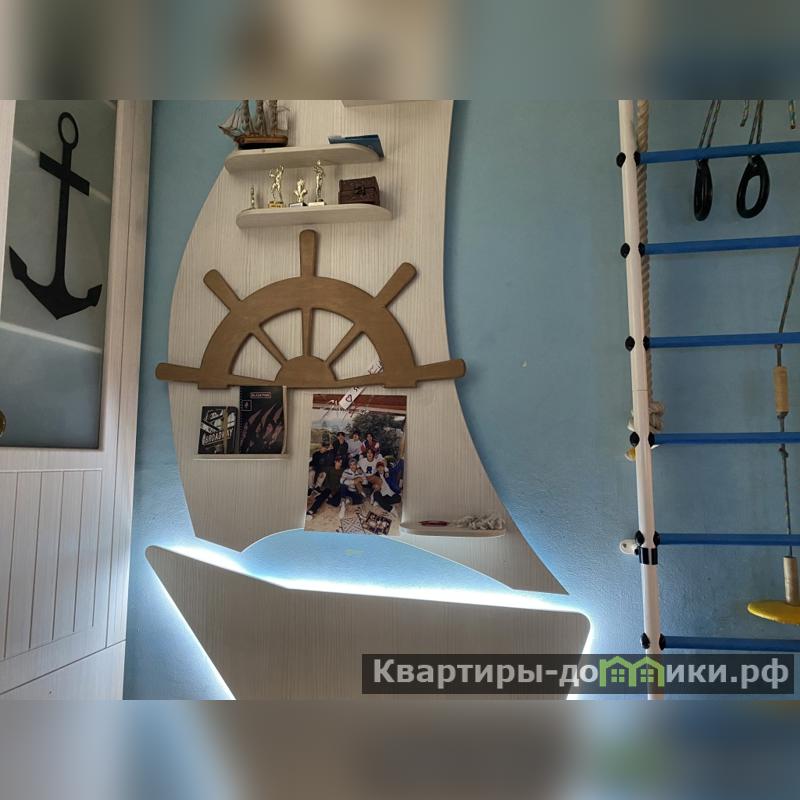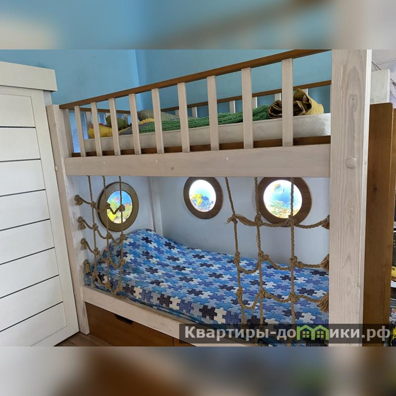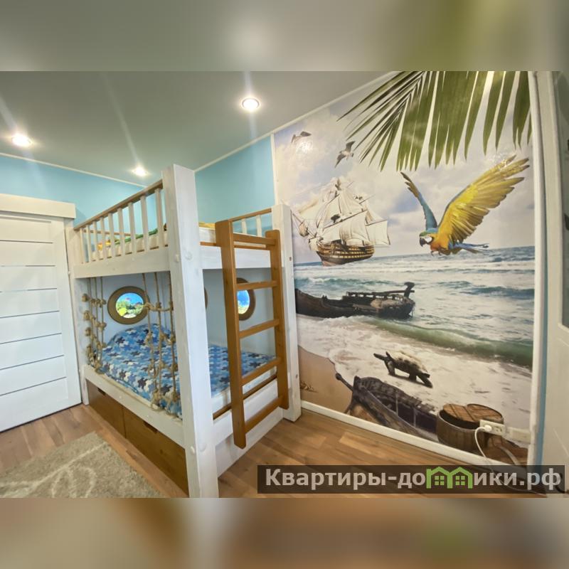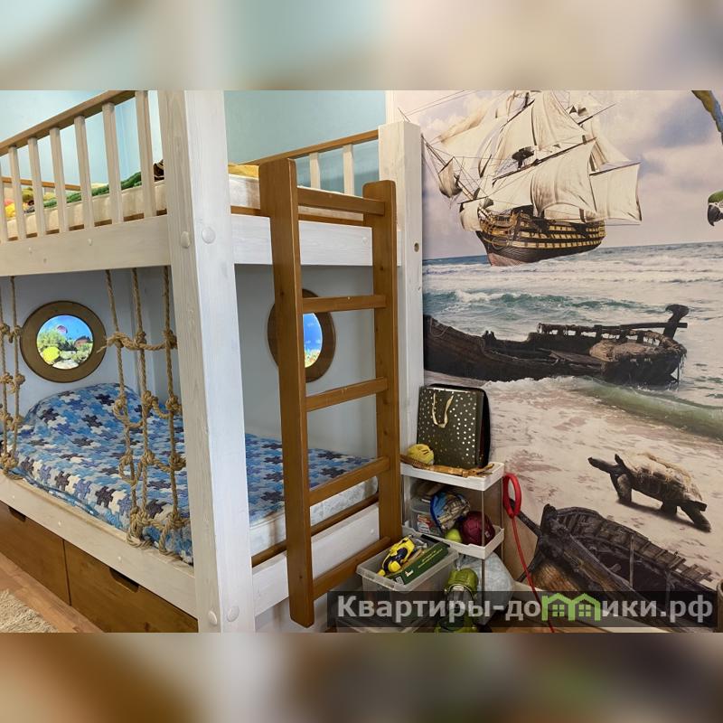 6) Детская комната с дизайнерским ремонтом. Бонусом новым жильцам остаются детские книги, игрушки, двухэтажная кровать с подстветкой, шкафы и зона для учебы.