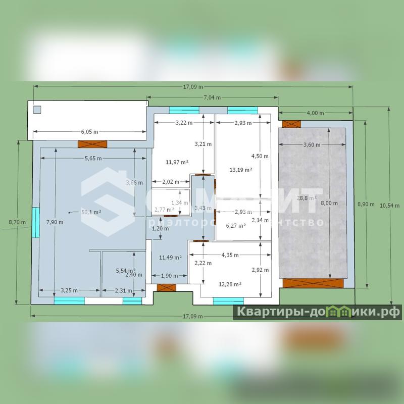 - Перегородки: газоблок 100 мм.