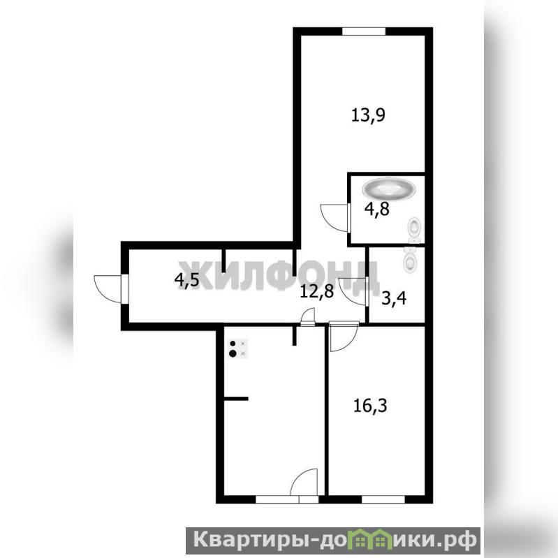2 комн. квартира по ул. Преображенская. Общей площадью: 72.70 кв.м.