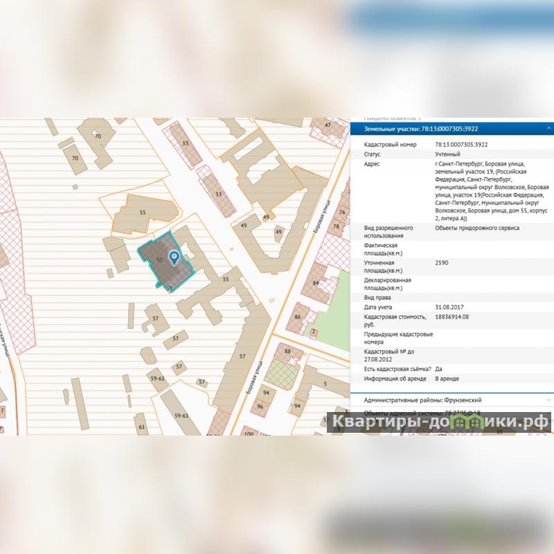 Отдельно стоящее здание находится по адресу: Боровая ул. 55 корп. 2, в Фрунзенском районе Санкт-Петербурга. Здание находится в пешеходной доступности (10 минут) от станции метро Обводный Канал, также в скором времени откроется рядом станция метро Боровая.