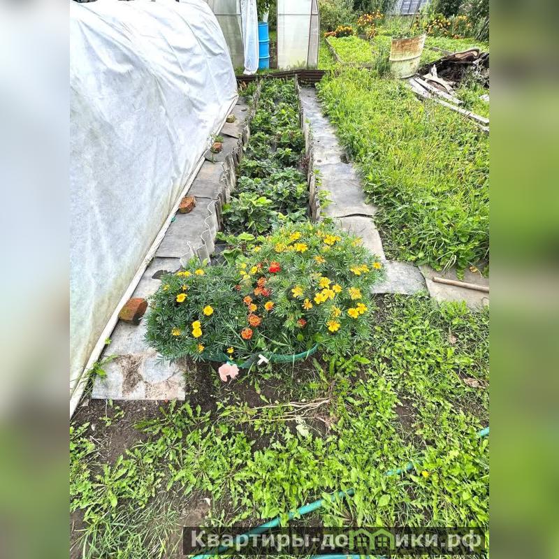 - две теплицы, цветочные клумбы;