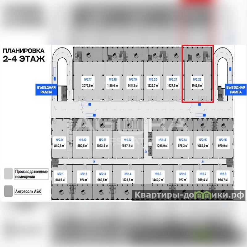 От собственника - ПСН для размещения производства, цеха, склада или офиса (шоу-рума и офиса продаж). Производственное помещение расположено в 4-х этажном здании на территории промышленного кластера лайт-индастриал, на северо-востоке столицы, в районе Отрадное. Помещение площадью 1742,8 м2 находится на 2-м этаже (блок на плане 2.22). В этом помещении предусмотрена антресоль на высоте 4 метра - для размещения административного персонала и обеспечения бытовых нужд работников (АБК). Высота потолков 7 метров, нагрузка на пол на 2-м этаже – 1,5 тн/м2, шаг колонн — 12 м*12 м. Электрическая мощность 157 кВт (из расчета 90 Вт на м2). Помещение относится к городской промышленной недвижимости для малого и среднего бизнеса, это 1-я очередь проекта AFI ПРОМ Алтуфьево, общая площадь 1-й очереди 133 700 м2, срок ввода в эксплуатацию – декабрь 2026 года. В 1-й очереди – всего 87 помещений (на 1,2,3 и 4 этажах).