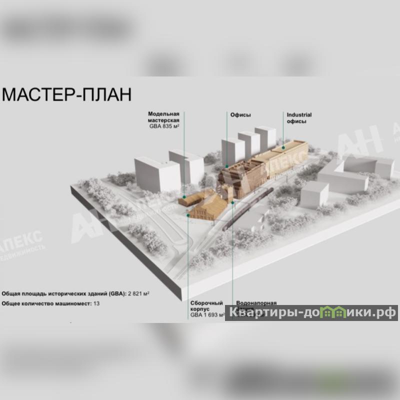 Водонапорная Башня - 290 кв.м. , Модельная Мастерская - 835 кв.м. и Сборочный Корпус - 1693 кв.м., 7 этажный бизнес центр класса А с офисами и industrial офисами в соседнем строении.