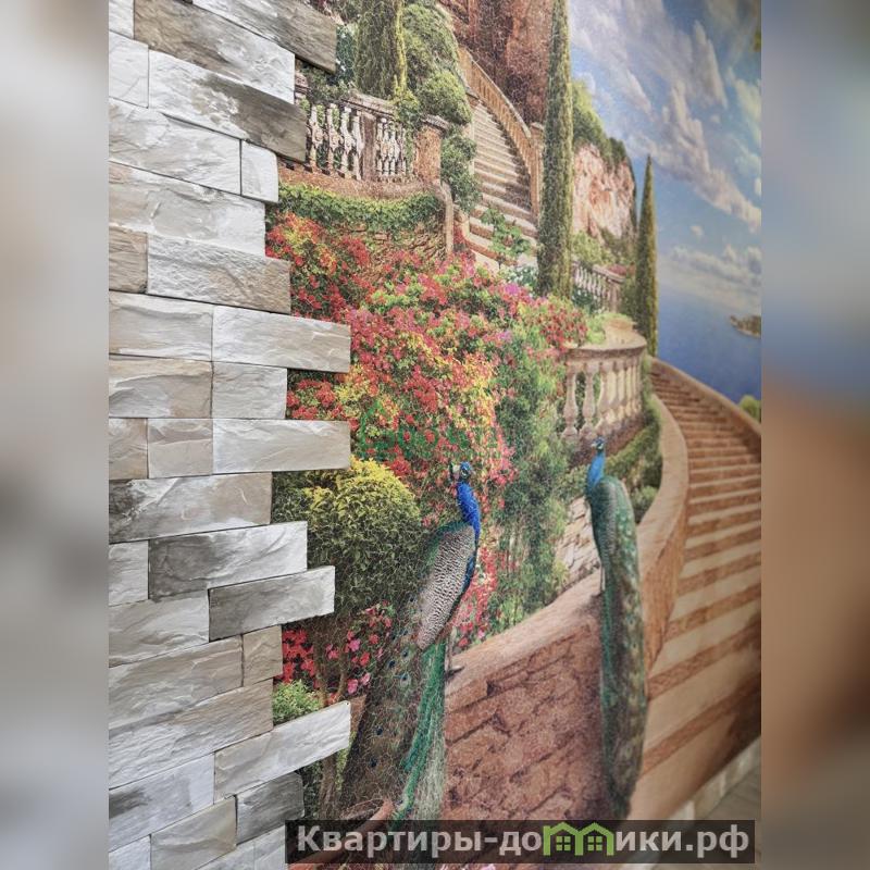 В прихожей выложена фреска, обрамленная натуральным камнем, на стенах чередуются качественные обои с декоративной штукатуркой. На полу ламинат высокого класса, на кухне - плитка. В квартире частично установлена система теплый пол.
