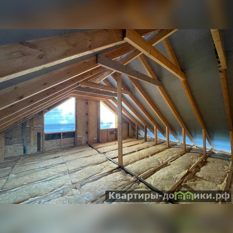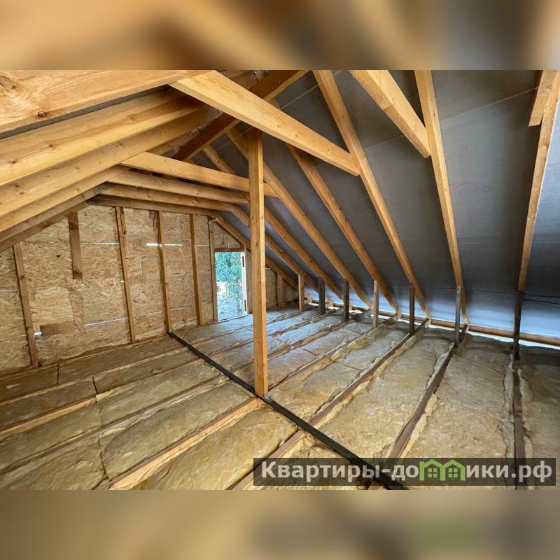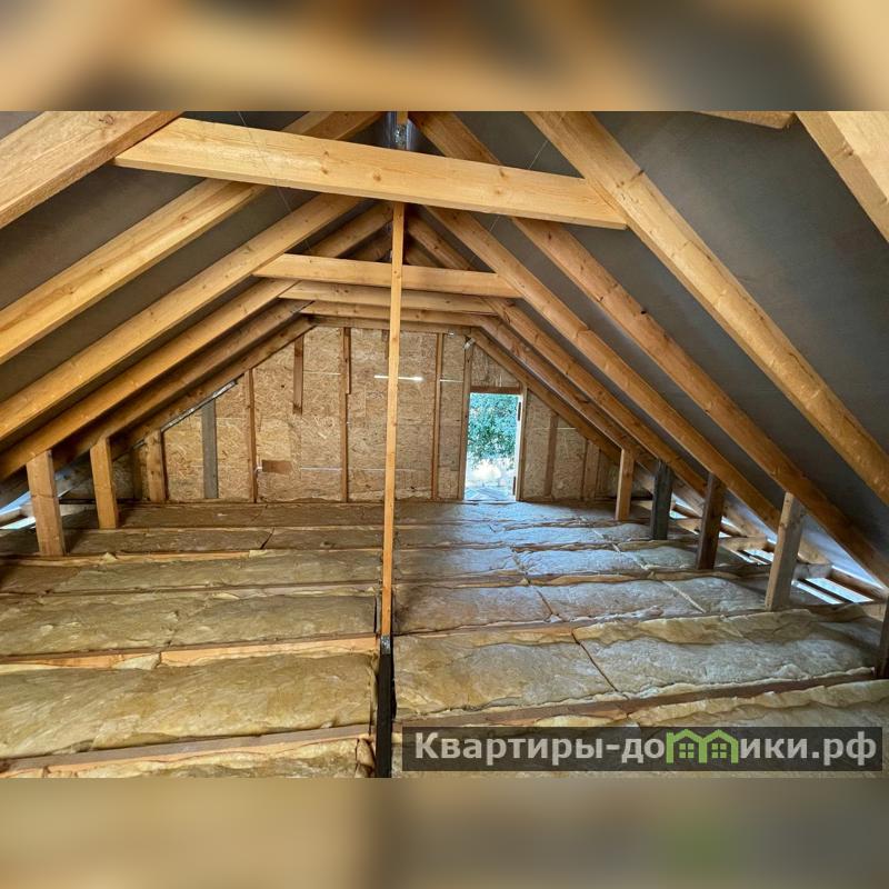 Крыша высокая, что позволяет обустроить полноценный второй этаж, на котором легко можно разместить две раздельные комнаты. В доме планируется залить отмостку, выполнить шпаклевание стен, поставить забор на участке, вывезти строительный мусор с участка.