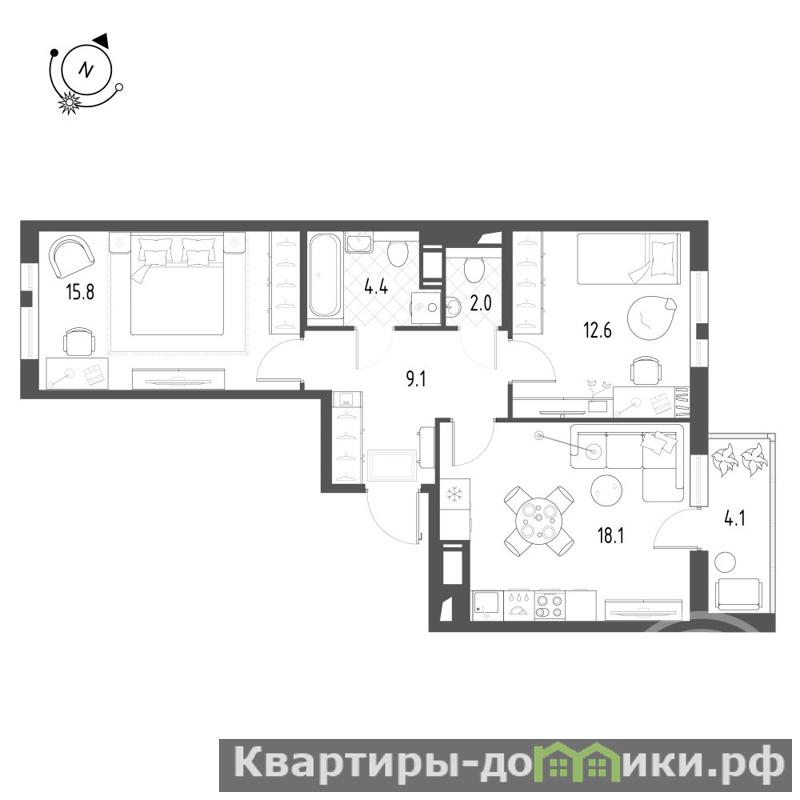 Продается уютная 2 х комнатная квартира ( 3Е) , где 2 полноценные комнаты + кухня-гостинная, в современном жилом комплексе ЖК Монография . 63,9 м2