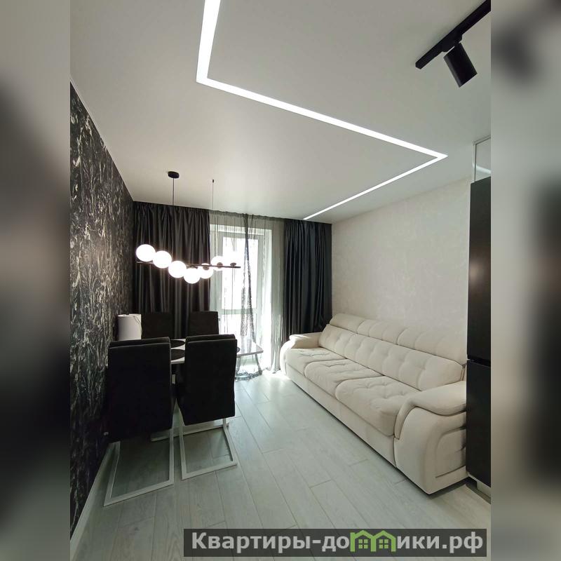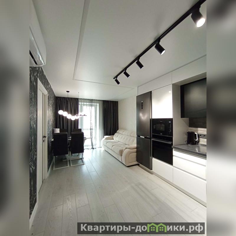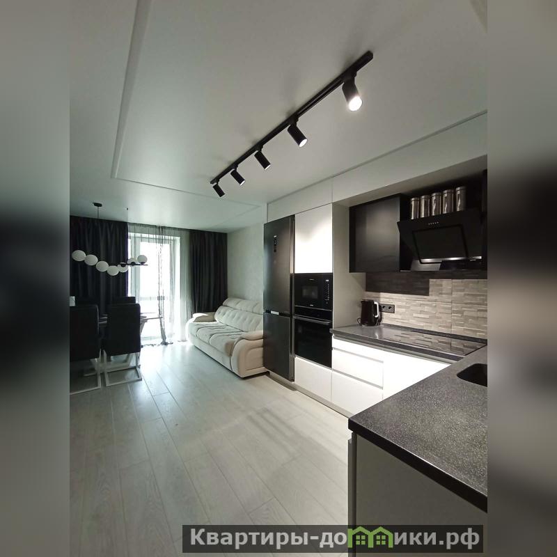 Большая кухня -гостиная,сделана со вкусом,выход на лоджию с панорамным остеклением. Спальня в бежевых тонах , комната для детей.В обоих комнатах вместительные красивые шкафы -купе,в детской на окнах римские шторы.