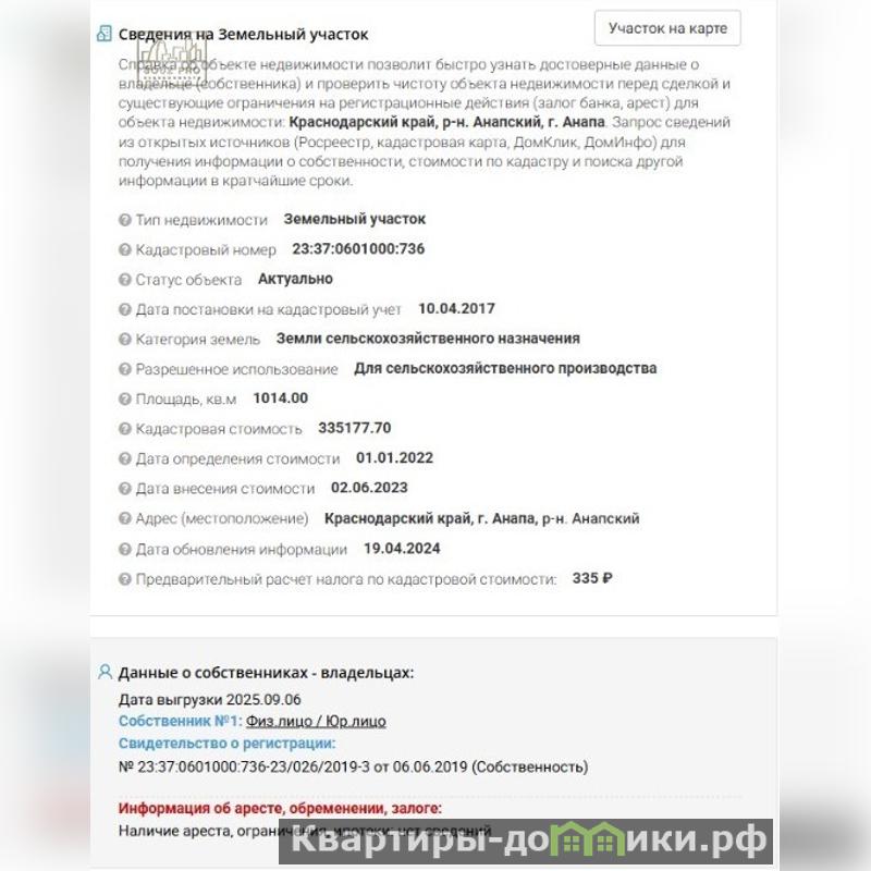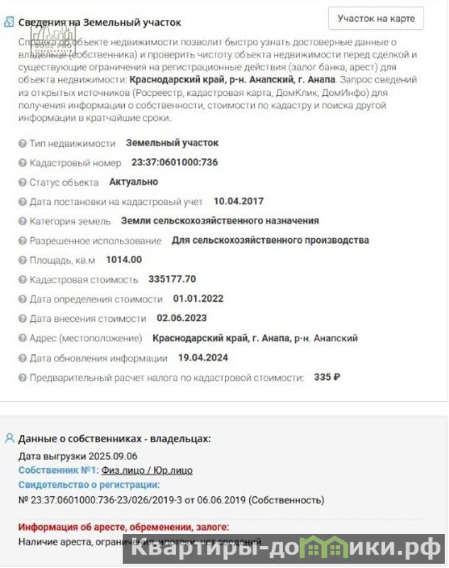 кадастровый номер - 23:37:0601000:736 возможен торг